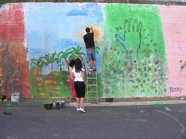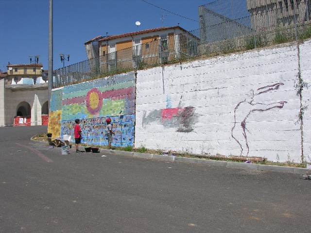 The project underlined the necessity to help people to express their ideas and imagination without fears. They can do that best through their creativity. All inhabitants of different ages, born in Soveria Mannelli or living in the area, were asked to work together in painting a public wall (40mx9m) as a symbol of their cooperation and creativity.