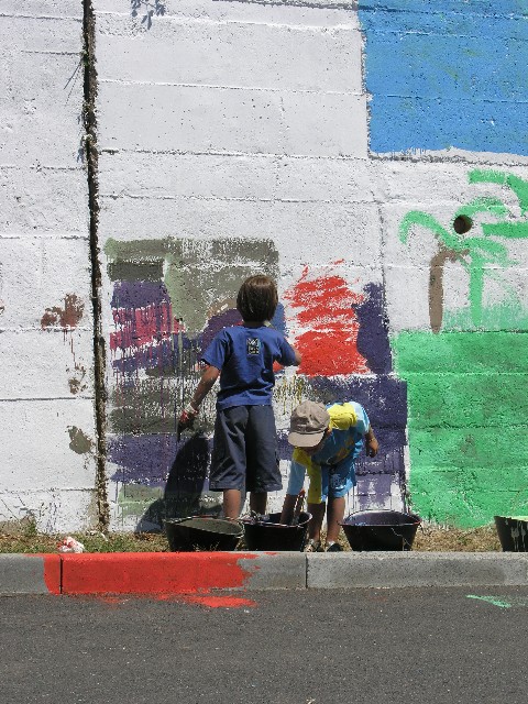 The project aimed to strengthen art in local community education curricula and to restore a relationships with inhabitants and their own community through an action painting.