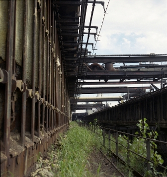 The heights of those towers were amazing. No angle can capture it fully. Yet in her photographic work Eleftheria Lialios shows how to deal with these industrial monsters now gone silent. Time passes by them just as rifts in society show themselves with the rich living on the one side of the track and the poor, including all those who work at the steel factory, on the other side of the track. That was depicted in Marquez's "hundred years of loneliness".