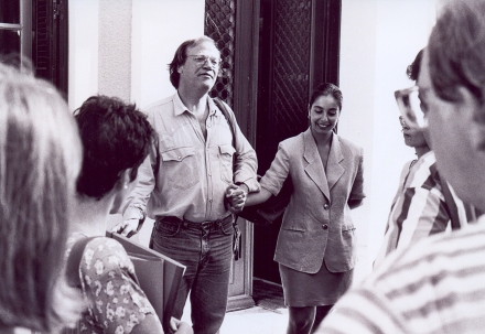 Aleka Markogianni speaking to Eleni Iliopoulou and Hatto Fischer with Maya