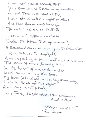At this moment Brendan said now he realizes what an unhealthy life he leads in Dublin. Shortly thereafter, upon returning, Brendan needed a triple by-pass. There followed that famous poem called "The man made out of rain", an image depicting his father standing at the foot of the hospital bed and him, Brendan, imagining all that pain just flowing.