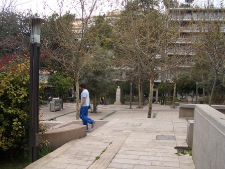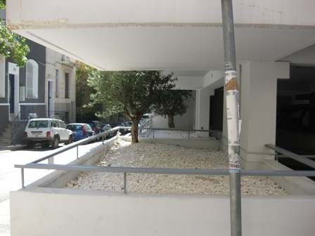 In discussions about Athens there is repeatedly pointed out that the city has too few breathing spots. Cramped, since built up very quickly and without any clear plan due to first waves of immigrants from Asia Minor and then people from the islands seeking in the capital employment, the city expanded and urbanized precious land without regard for public spaces. Pavlos Delladetsima maintains that there is a coalition of interests which prevent the city taking the initiative on behalf of public land. Most of the time the excuse and explanation is lack of money while waves of privatization leave the city chocking on lack of space. It is naturally a combination of pressure by the housing market on land and lack of aesthetical principles which leads to a wild expansion. Regardless of its built heritage, the city destroyed old houses to make way for the new. Most of the time it meant classical buildings with gardens are replaced by four and five storey high apartment blocs. For example, building speculation has put pressure on the remaining houses which are preserved by good luck due to people not selling their houses, whereas the contrast could not be stronger when suddenly the elevation jumps from one storey to five story houses.