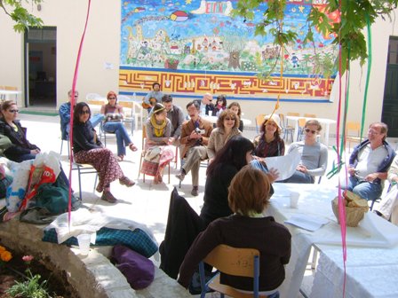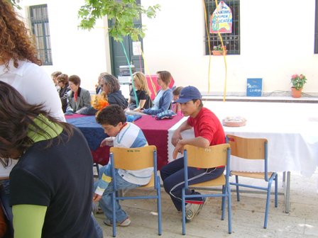 Readings took place first at the Cultural Centre and then one day laterunderneaththetreeinKastelli and this as part of the Kids' Guernica exhibition in Kastelli, Crete 2006