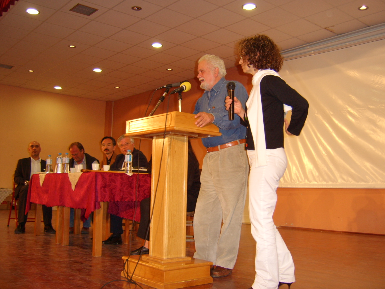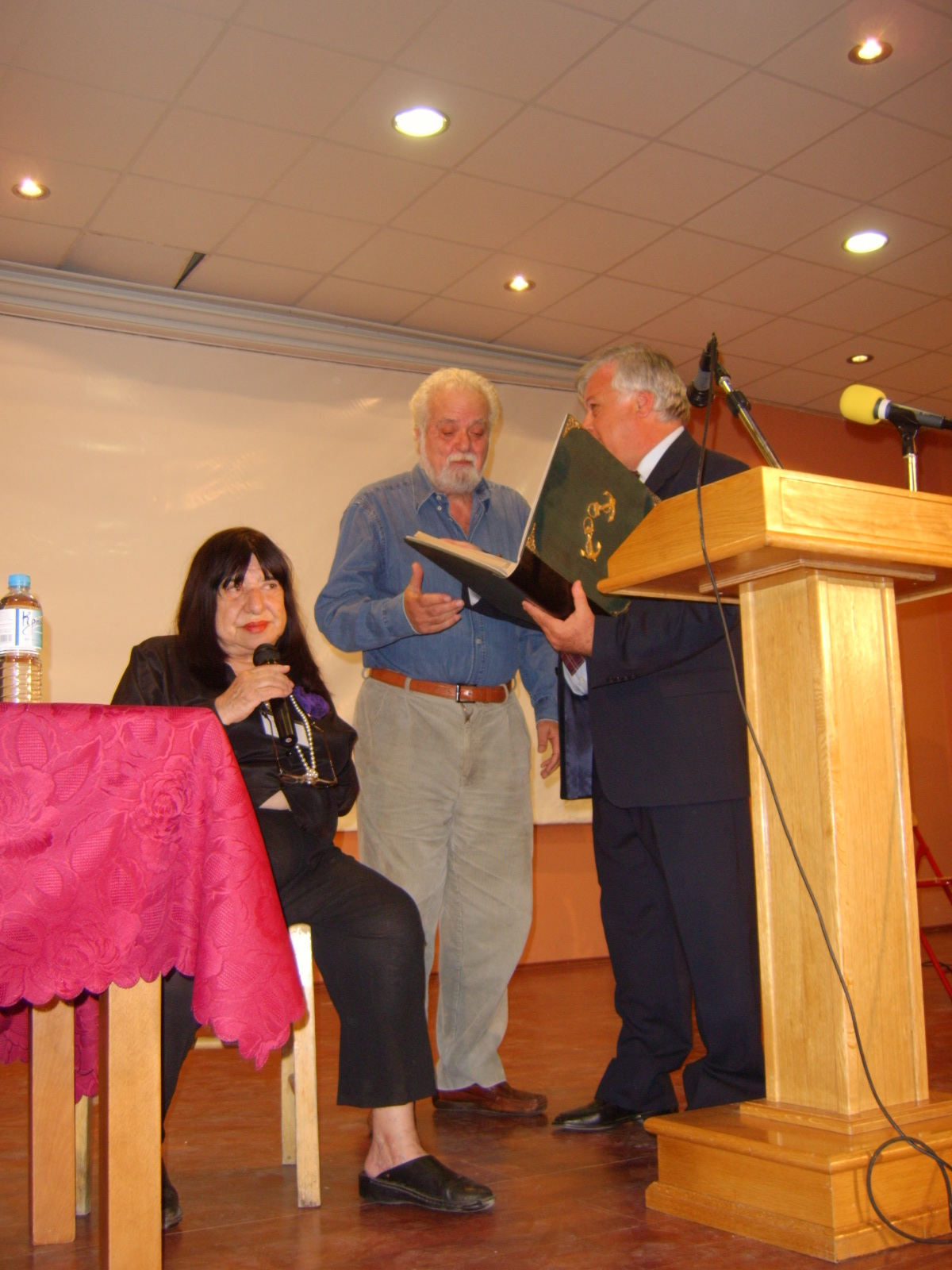 Katerina Anghelaki- Rooke translating his speech into Greek