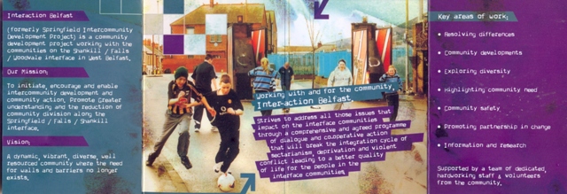 The NGO does something crucial to the Belfast peace process. It is engaged in what can be called "confidence and trust" building measures. They have established a network of people on both sides of the peace fence and who are all connected per mobile phones. In case something risks getting out of control e.g. some youth provoking across the border the other side, immediately the other side is called up in an effort to descalate a conflict before it can get out of control.