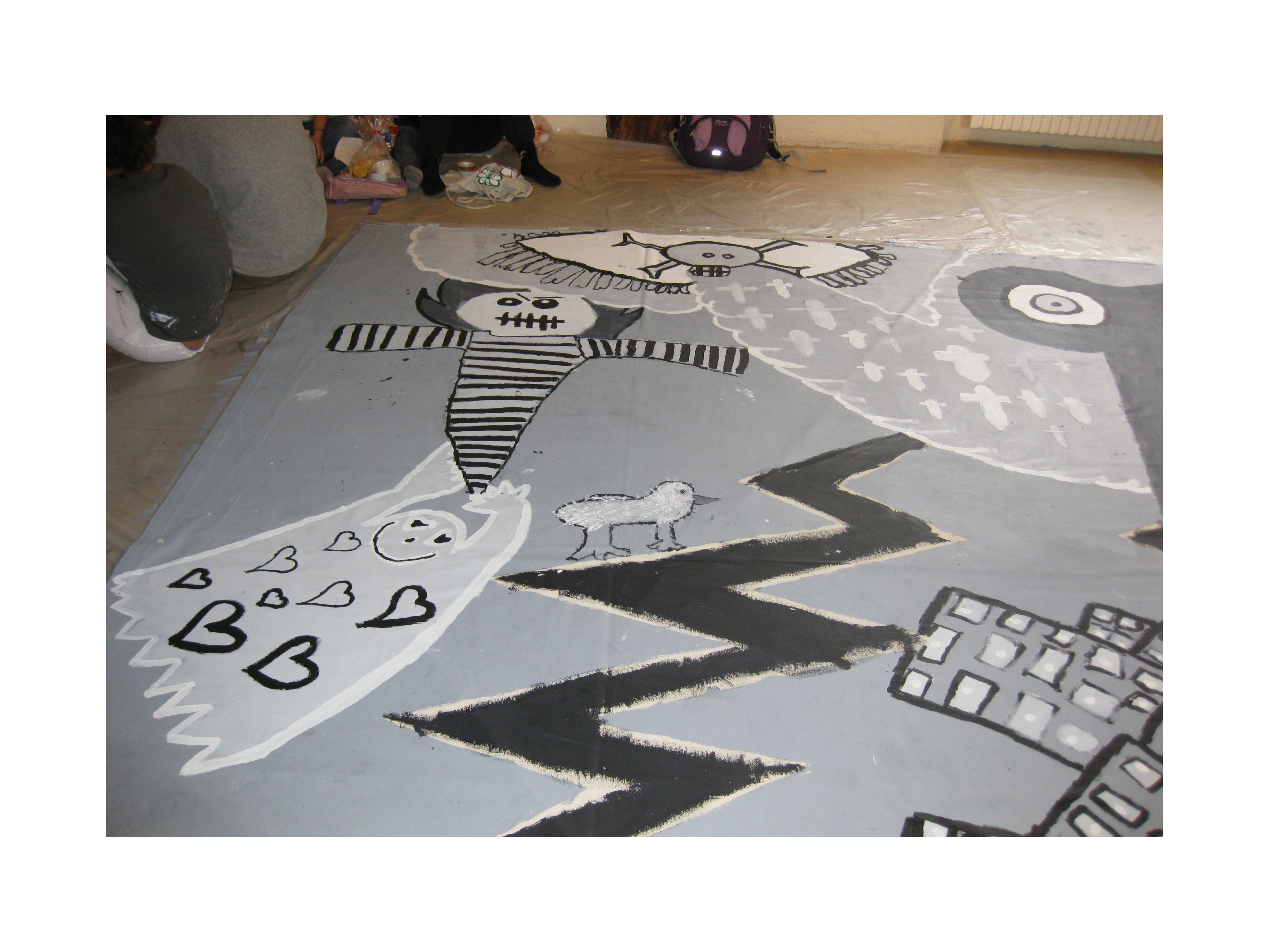 By taking things into their own hands, the children showed in the best possible tradition that art can be subversive (Carol Becker). Feeling the pressure from Boris and his collaborator, they decided to paint in secret a second mural. It shows what a difference it makes when they are free to make use of colour and more importantly, they had no fear to make mistakes.
