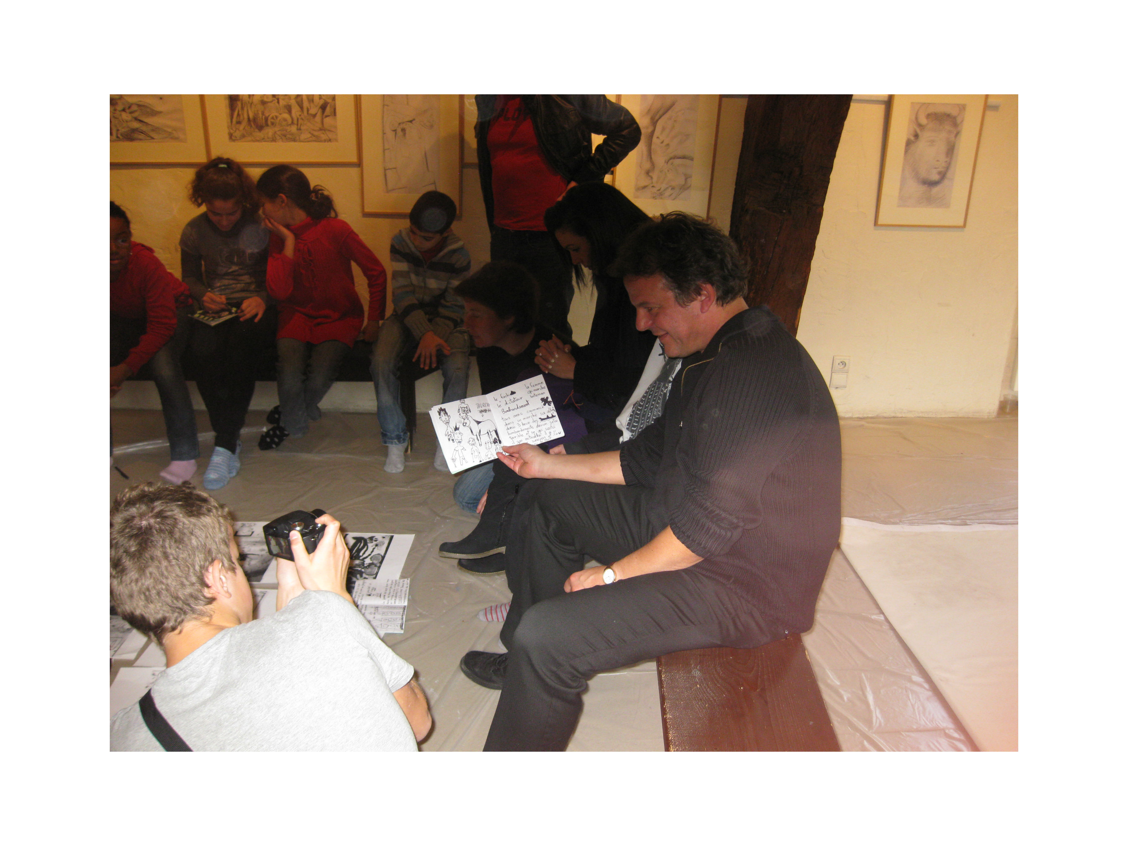 Children in Picasso's atelier began to ask many questions as they were touched by the story of Manuel's father. Also the way that Manuel tells it and responds to the children shows how much he can convey feelings without imposing. Manuel Gonzales had brought along his two sons, one of whom was doing the photography to take home memories. For Manuel it was equally exciting to be in the very atelier where Picasso had painted Guernica.