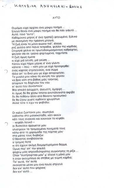 « The Poetess Katerina Anghelaki Rooke by Hatto Fischer | War Diary »