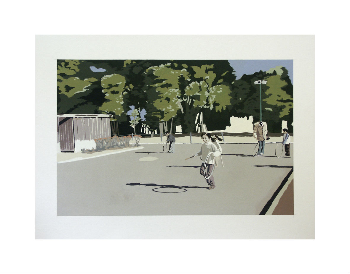 He calls this scene of children in a school yard 'atom of peace'. A lot can be read into the shadow and into the motion of the child running in the foreground. As he narrates himself without intending to do so, this scene took on the connotation to Fukushima and what has happened in Japan since March 11th 2011. At that time the Tsunami wave hit the coastline where nuclear reactors are irresponsibly located i.e. too close to the sea. The nuclear reactor was damaged even if protected by a ten meter high wall. Since then Japan has to live with similar things happening as was the case in Chernobyl.