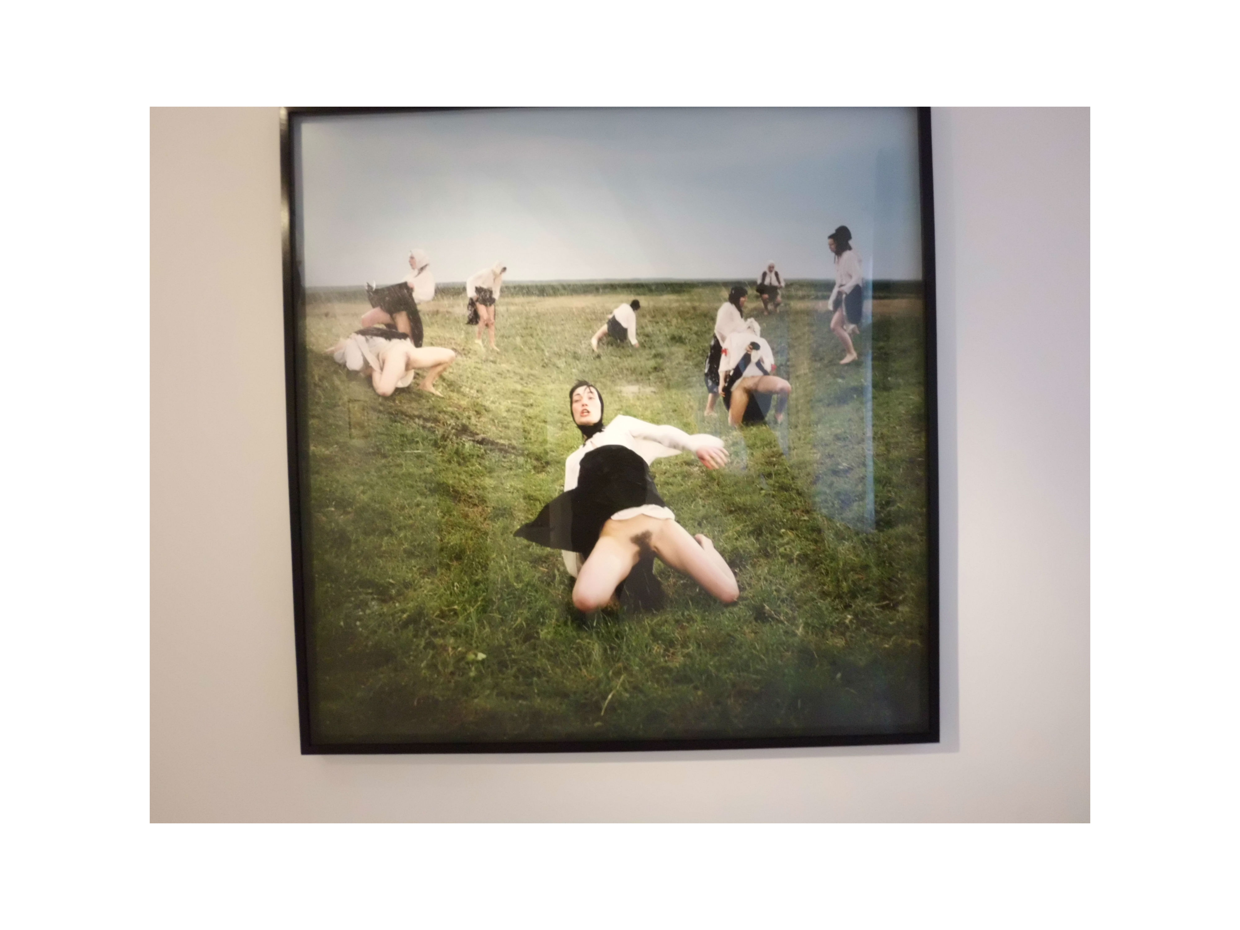 The text accompanying the exhibition explains the intention of the contemporary artist Marina Ambramovic. The print "women in rain #2" (2005) is taken from her video work called 'Balkan Erotic Epic'. Show are traditionally clad women. By showing their vagina in the direction of the sky, the intention of such a painting is a wish evoke a claim that the old Balkan belief in human sexual organs in need to secure the fruitfulness of the earth is still of relevance today. This claim then ties together the overall theme of 'fertility' of the exhibition as it may turn out to be a search for another kind of fruitfulness through the arts.