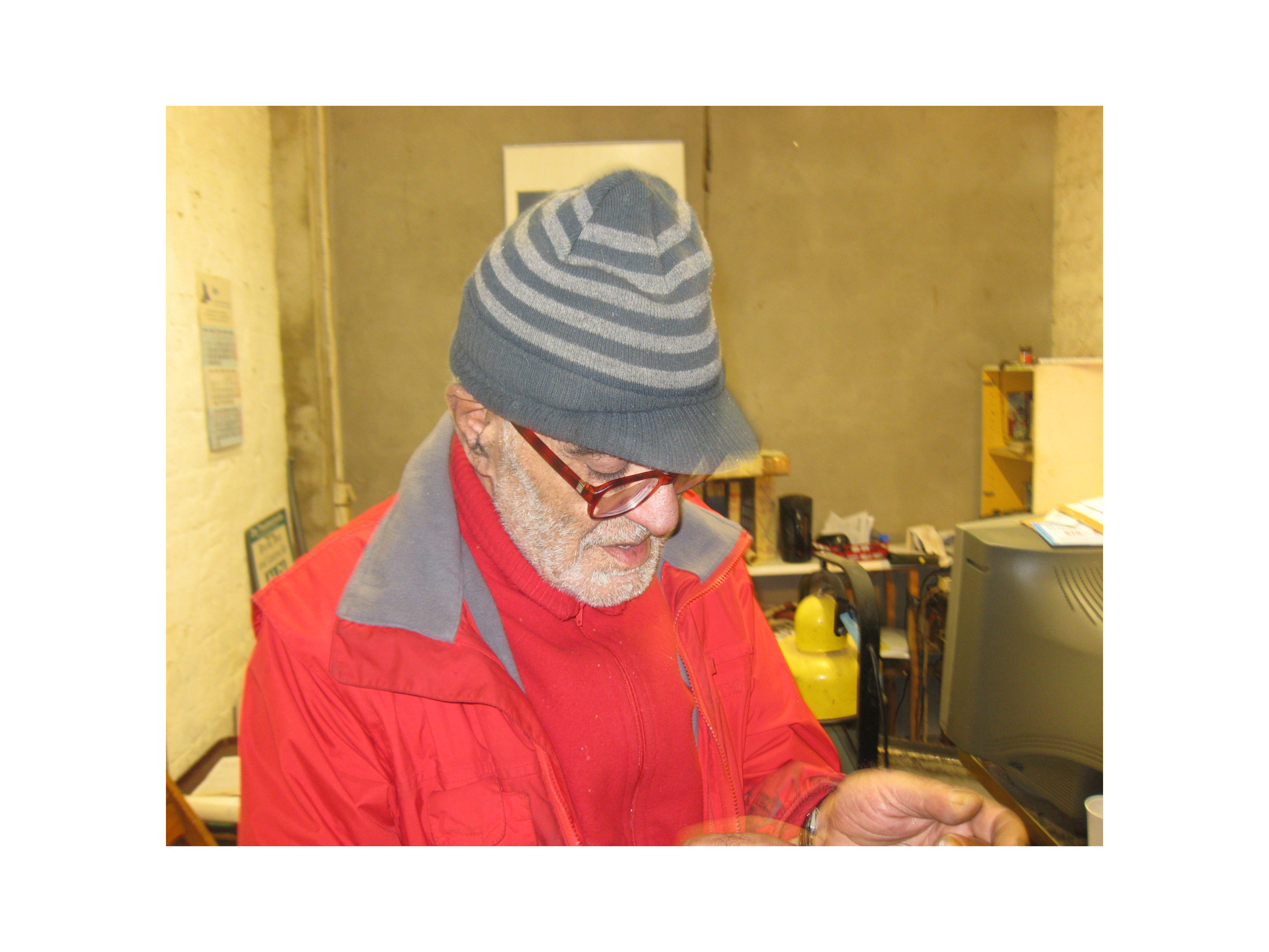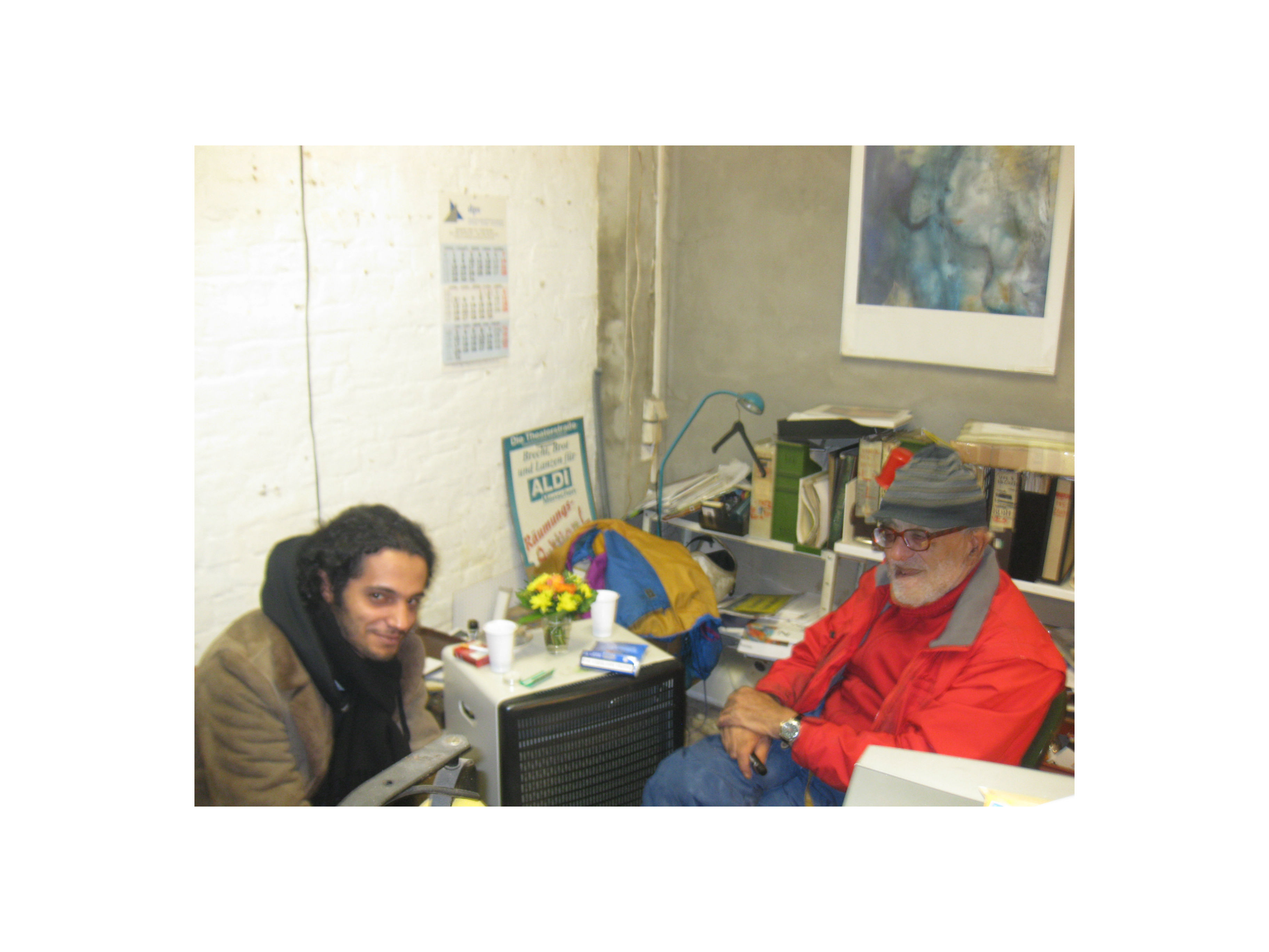 Jacques Naoum runs the Weekend Gallery. He comes from Lebanon where he was born in 1938 to study at first Theatre and Romanistic. Of course he speaks Arabic but due to the colonial history of Lebanon therefore as well fluently French. Naturally he knows as well English while perfecting constantly his German. He has studied as well something similar to Science of Religion, only Islam. He did so at a time when both studies were housed in the same Tillich Building of the Free University with Prof. Klaus Heinrich for Science of Religion attracting a diversity of students from all the other faculties. He satisfied simply that need to think across borders of disciplines.