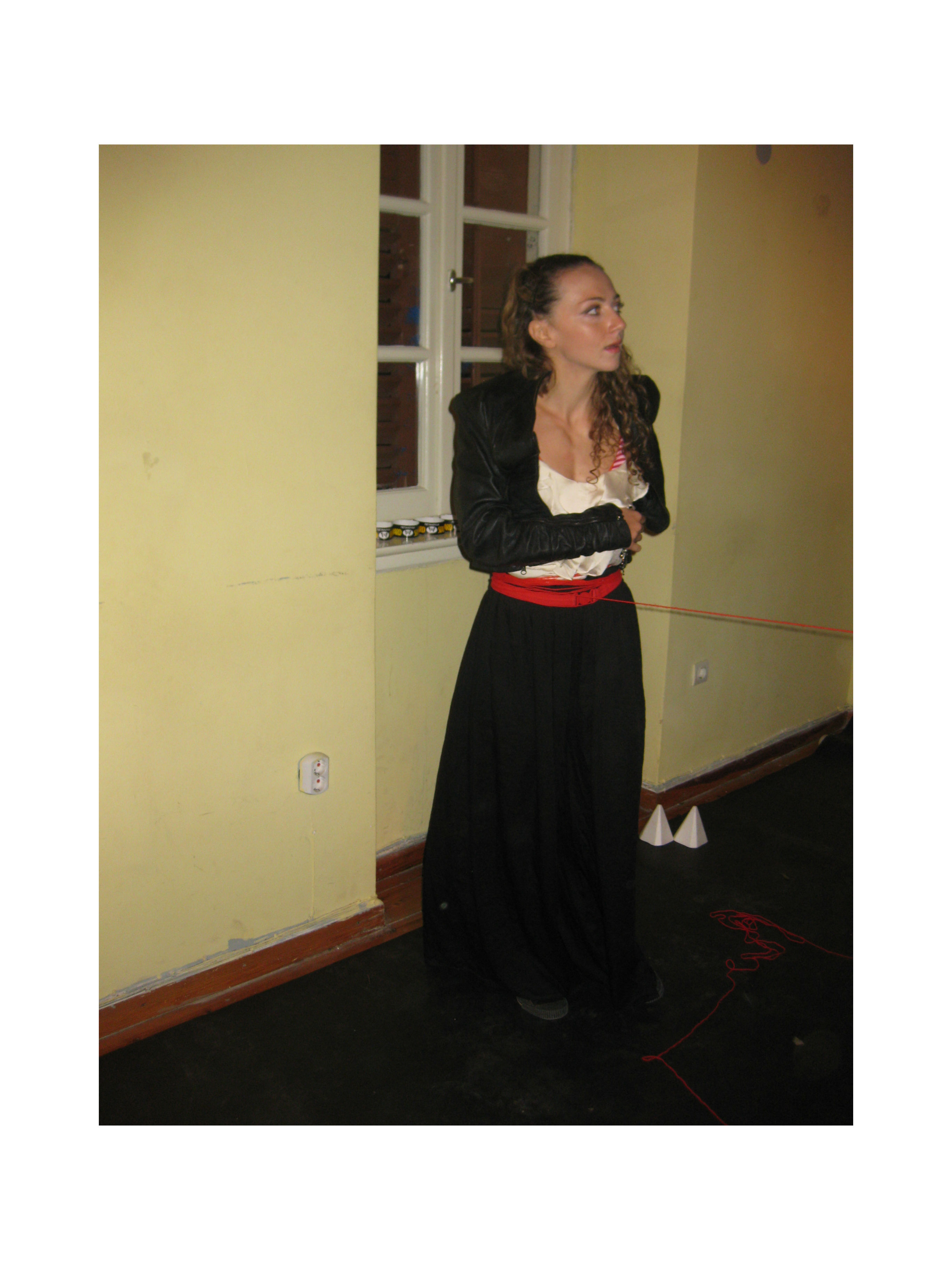 Christine with red thread - as if life hangs on a thread