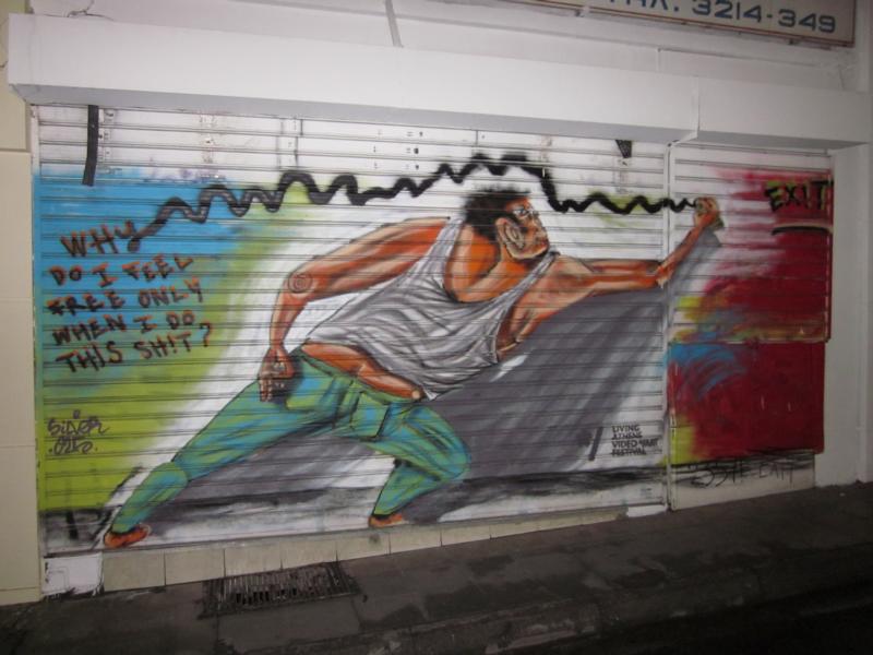 Aesthetics of resistance entails literally a search for new forms to express this desire for change while not losing sight of sublime beauty and a sense of balance. There can be seen on some walls even attempts at such artistic expressions which reflect a respect for the economy of space while using skillfully what is given, whether a beautiful wall or just a pillar. In respect of this economy, beauty shows itself by demonstrating some simple, equally subtle lines will do. For the embodiment of freedom to dream is at times best expressed by the sublime beauty of simple lines.