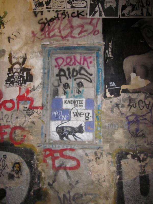Consequently any reading of what is written on the walls indicates an increasing polarisation between Anarchists willing to take on the Neo Fascistic forces, and those who sympathize with this extreme Right Wing orientation. How things shall play out all depends on the level of crisis reaching everyone and radicalizing unwantingly or not those desparate for a way out of their own default e.g. loss of house since they cannot repay the loan they took out from the bank. That and the added tax burdens while given low income makes it hard to see what solutions can be found in the forthcoming not years, but months or even days.