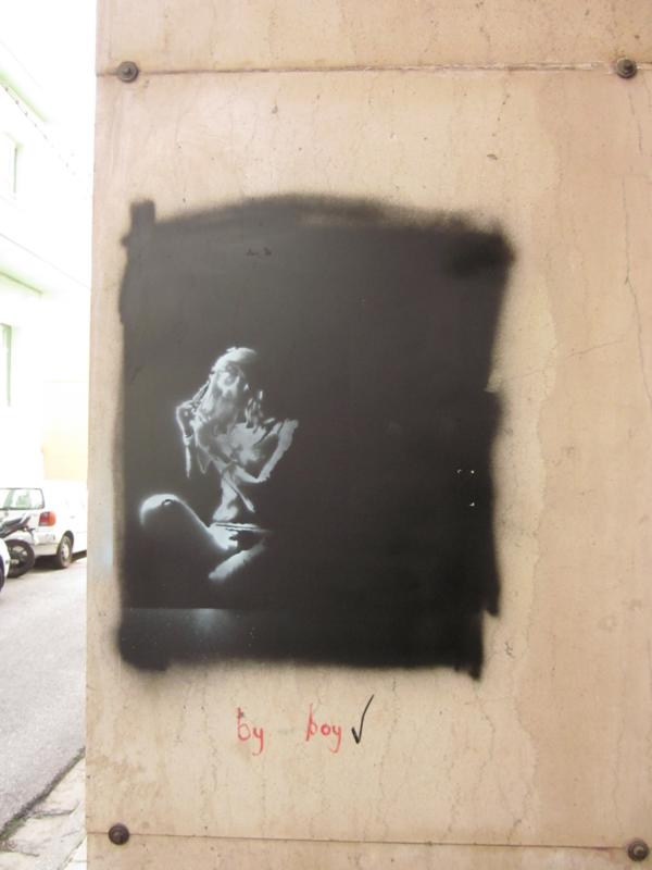 But just as the lights dim out eventually, so the years go by without the call 'but the show must go on' being taken up, except for some other city as was the case in 2012 when it was the turn of London. But this particular graffiti painted onto a pillar uses the background as a slim form to emphasize what has become the modern version of the centaur, only now it is half man, half woman, and in between the hints provided by this graffiti like drawing is what Picasso would show as being the heels of a steer and not just simple feet. Run along, my imagination, it seems to suggest, run along and don't forget to steer free from troubles ahead.
