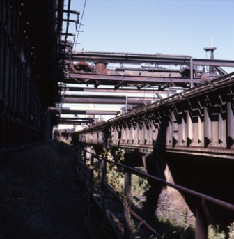 The heights of those towers were amazing. No angle can capture it fully. Yet in her photographic work Eleftheria Lialios shows how to deal with these industrial monsters now gone silent. Time passes by them just as rifts in society show themselves with the rich living on the one side of the track and the poor, including all those who work at the steel factory, on the other side of the track. That was depicted in Marquez's "hundred years of loneliness".