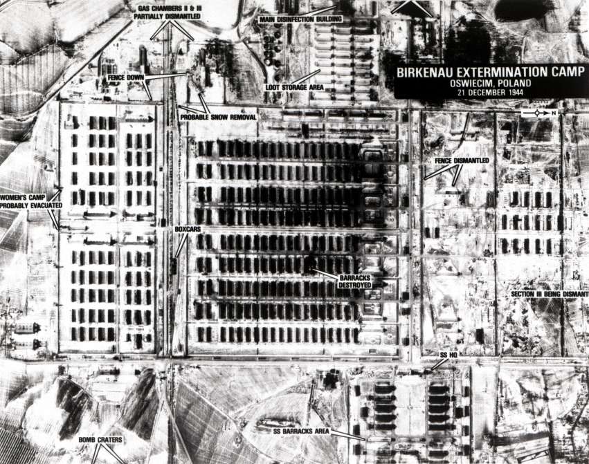Aerial reconnaissance photograph of Auschwitz concentration camp showing Birkenau Extermination Camp