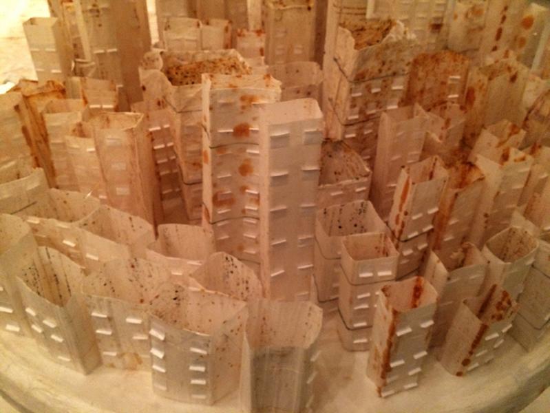 Auf den Spuren von den jüngsten Arbeiten / Ausstellungen von Azade Köker, wird eine erstaunliche Entwicklung sichtbar. Dabei ist eine Kontinuität durchaus erkennbar denn bereits in 1978 befasste sie sich mit den Gesichtern von Häusern und darum um welches Bild eine jeweilige Stadt abgibt, wenn durch die Straßen geschlendert wird, um bewusst einen Begriff von Benjamin zu verwenden. Der Fokus auf die Stadt beginnt mit einer Video-Installation wobei praktisch auffällt die Stadt wird als eine klare Abgrenzung von ihrer unmittelbaren Umgebung dargestellt. So dann steht die Stadt fast einem Künstler alleine auf der Bühne im Lichtkegel. Erst dann wird dem Besucher der Ausstellung durch den Titel bewusst gemacht, hier handelt es sich nicht mehr um eine lebhafte, sondern um eine verlassene Stadt: 'abandoned'!