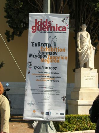 The Kids' Guernica exhibition at the Zappeion grounds displayed children's peace murals the size of Picasso's Guernica (7,8 x 3,5 m). One of these paintings was be done by children from Chios and from Izmir, Turkey to underline the theme of the Symposium focusing on dialogue between cultures.
