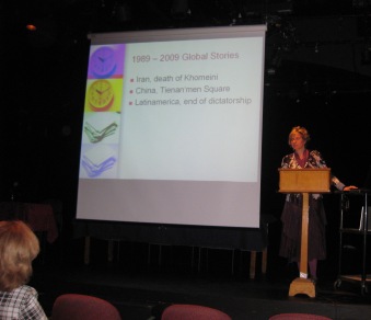 Tenor of her opening remarks was that so many celebrations have taken place to mark the 20 years after the fall of the wall, but each time she had to speak, she reminded herself and others what tremendous gain in freedom this fall of the wall has meant for both East and West Germany, but also beyond that for the whole of Europe.
