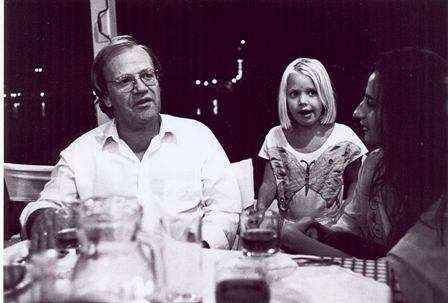 Aleka Markogiannaki speaking with Eleni Iliopoulou and Hatto Fischer with Maya asleep