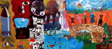 .Poiein kai Prattein invited Lebanon to participate at the Kids' Guernica Int'l event in Chios 2007. I was honored to be the coordinator of the action because of the simple incident that I am a mother who allowed her two daughters to paint on their bedroom walls during the horrible June war of 2006. We couldn't go out so the painting on walls was the response of our feelings to be trapped in our home. Meanwhile a more sacred peace movement was going on and mobilizing everyone around the world: the Kids' Guernica Int'l movement co-ordinated by Mr. Takuya Kaneda in Japan.