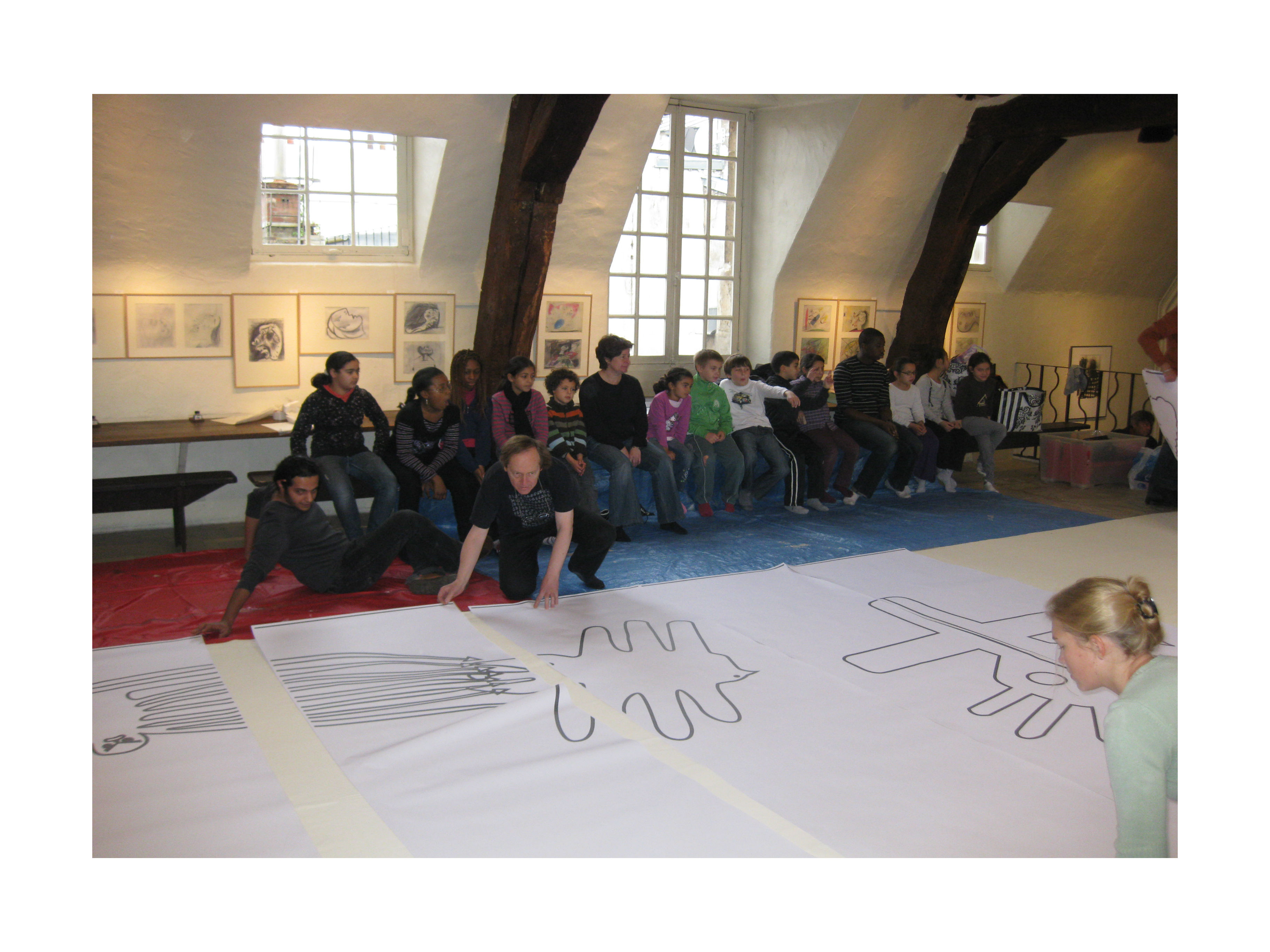 Something similar happened with Monique Kissel, Professor at the University of Saint Denis. She was interested in doing a workshop about Kids' Guernica with her students and brought them as a matter of fact into the atelier for a brief visit. Still, this chance to bring about further going reflections about Kids' Guernica, was not followed up by Boris Tissot.