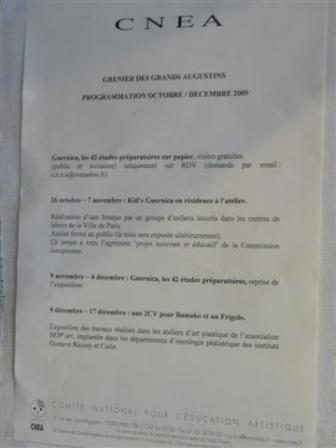 3 days preparation, dialogue with children, graphic exercises in the « Centre de loisirs Henri Noguères » of Paris (19e) (10h-17h) 7 October, 14 October, but probably the 21st of October in the studio of Picasso.