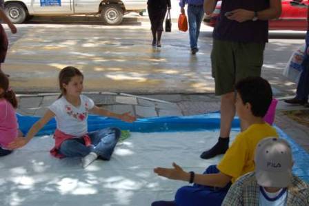 Thomas Economacos coordinated the children. He started by involving them first in talks and some simple initial games to initiate dialogue and at the same time to familiarize them with the space the canvas offers.