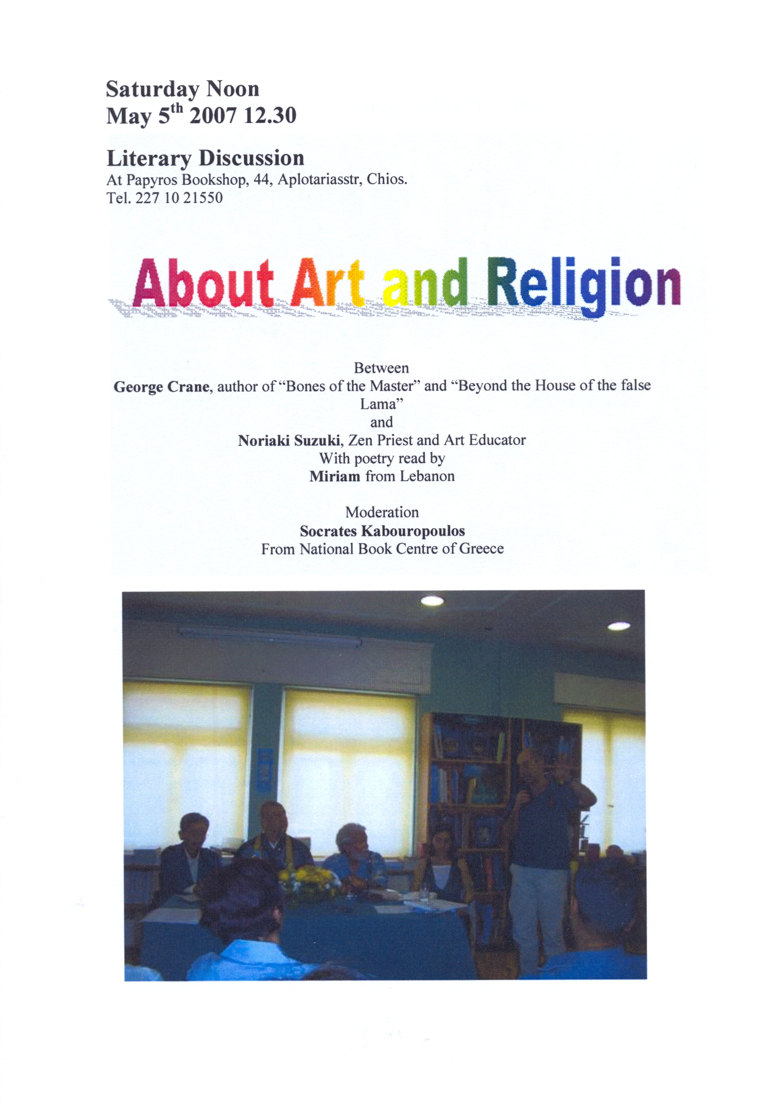 took place at the Papyros Bookshop on 44, Aplotariasstr. in Chios between