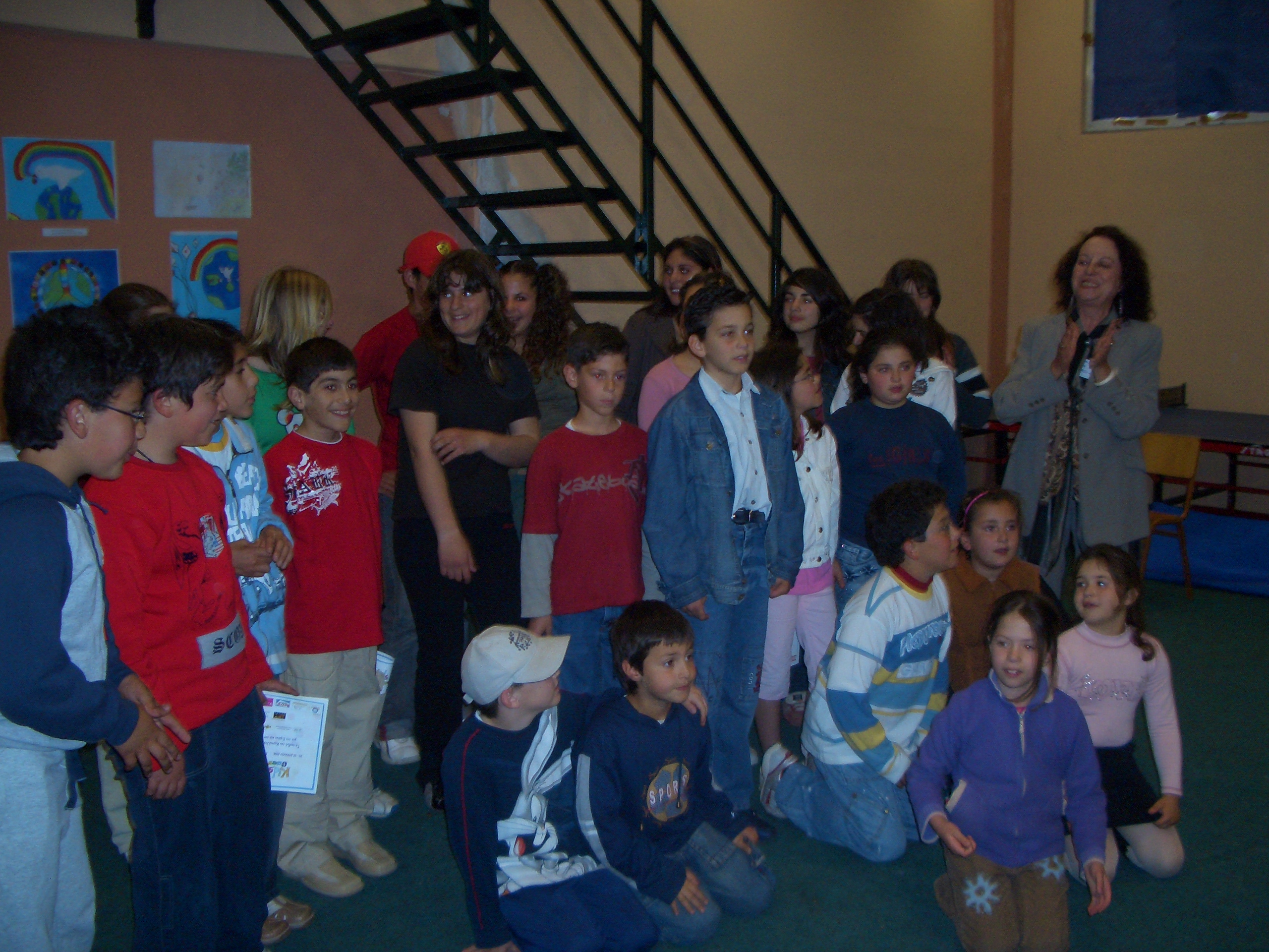 The exhibition included peace posters send by Kate Parker who could not come herself, but her students at school outside of London made them. Kate would join the Kids' Guernica exhibition and activities held in the following year in Chios 2007.