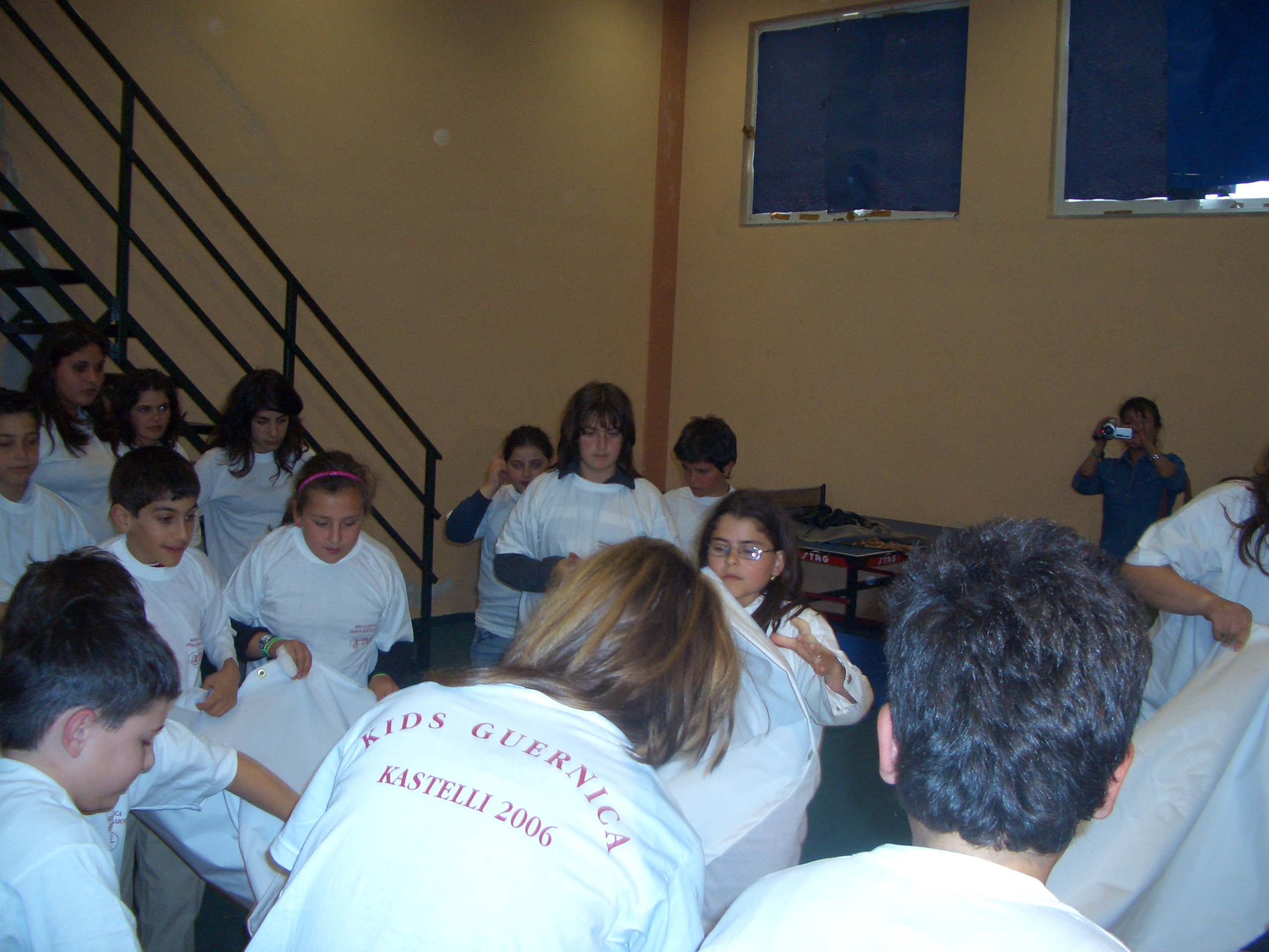 In Kastelli not many came right away to see the exhibition, others drove in and out on their motorcycles in the evening, that is when no one was around. There are numerous types of constraints in any community. Some voiced even stronger objections to this kind of action: a Kids' Guernica action. They perceived it as a publicity stunt by the mayor seeking re-election in the autumn.