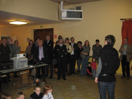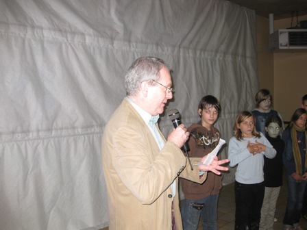 Nino reading Bernard Conlon's poem in French. It had been translated by Monique Kissel already into French for the Kids' Guernica exhibition in Vincennes, Paris which opened on 11th of October 2010 and which showed besides the mural of the students as well the Belfast mural called 'Optimism of Colours'.