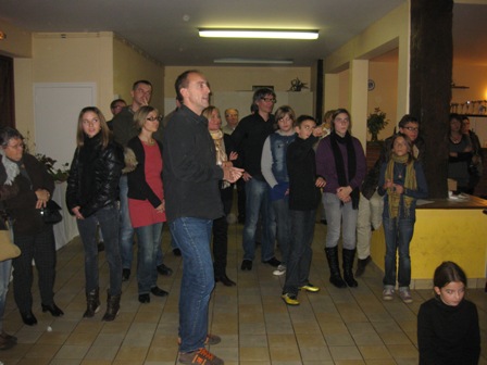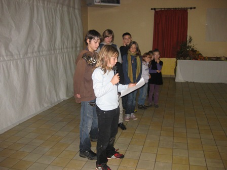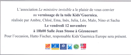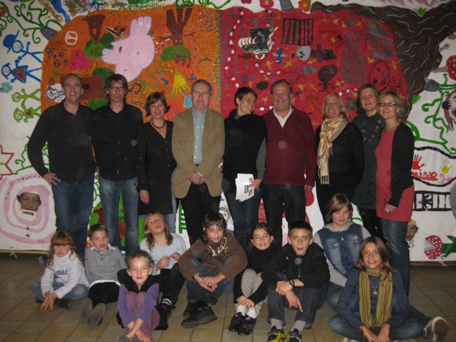 The two persons to the right are the parents of Alexandra Zanne. They came to see what their daughter had brought about with this Kids' Guernica action which took the children to Verdun where they discussed with a historian the reasons behind First World War.