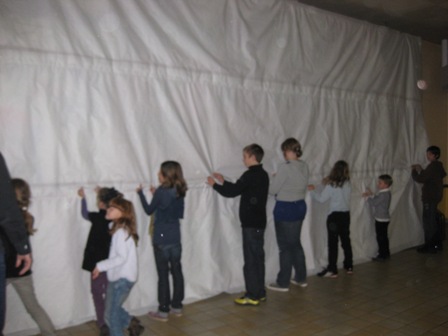 Community Hall where the mural was exhibited. There was already that day, Nov. 12th, a Friday suspense in the air. The opening was planned for the evening and expected was that the entire community would turn up.