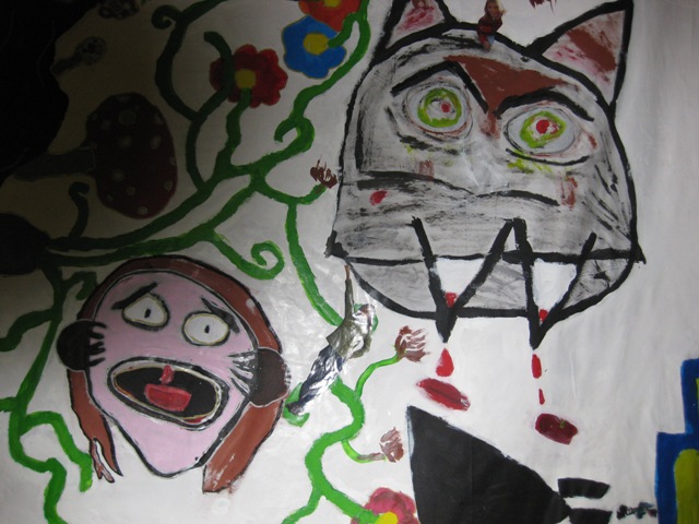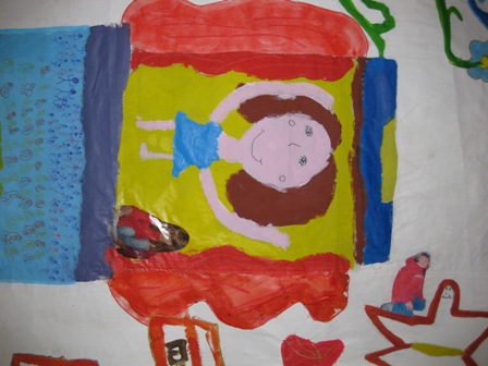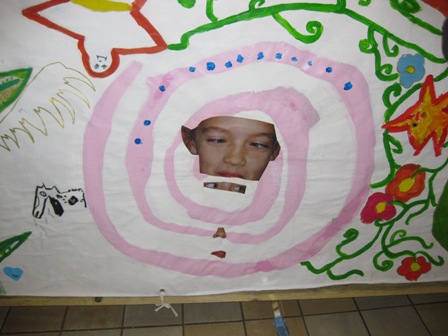 Photos of the children who painted the mural where put into the mural and Alexandra Zanne used this in a very clever way when ending her documentary film of the painting of the mural.