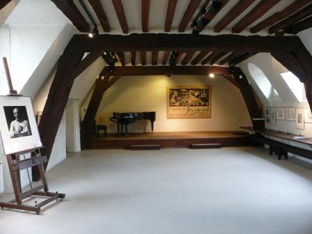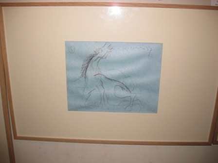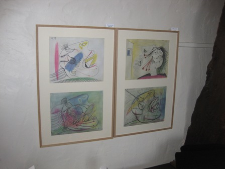 The floor space explains in part why the canvas for Guernica was 7,8 x 3,5 m. It just covered the surface of the floor. To the right were benches with a table running along the wall. Above the table just as on the other walls were Picasso's works - sketches he used while developing his idea for Guernica.