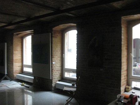 Hanging possibilities in B 26 Gallery with specific wall: raw brick