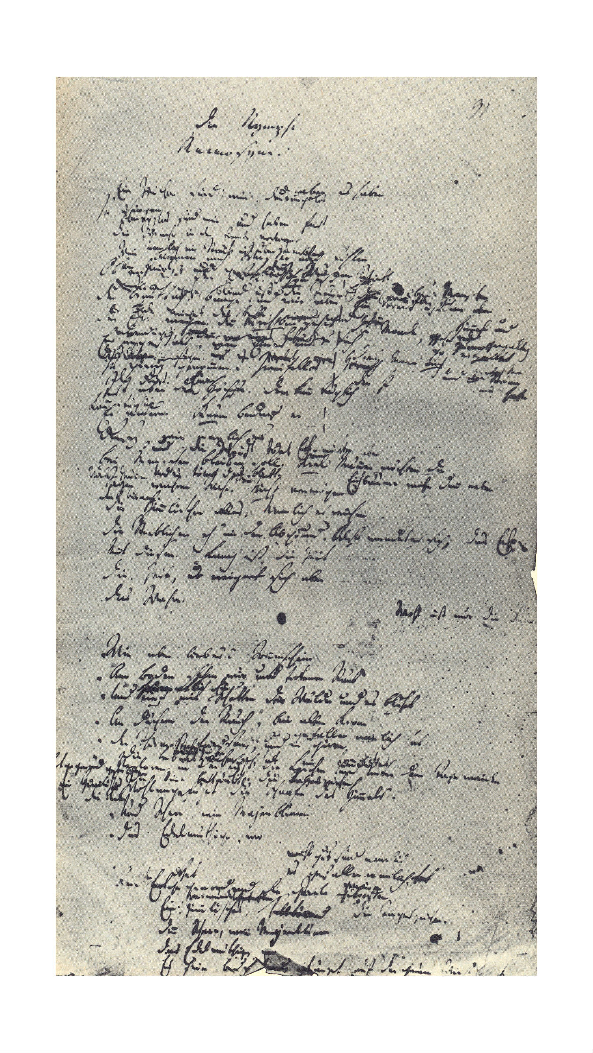 The demand to be 'politically correct' has a history. Hölderlin himself had been repeatedly advised not to speak out loud his positive opinion about the French Revolution, and his friend Sinclair was imprisoned on the charge of high treason. In the end, it seems plausible that Hölderlin himself knew no longer where to turn to, when to cry and how to continue writing under such severe conditions of constant suppression and suspicion. Especially after Susette had died, he seemed no longer to have a liveable love in sight, one which could have sustained his poetic writing despite a public not inclined to recognize his lyrical achievements. Finally he must have been completely tired out from literally wandering from city to city, country to country and still not finding the support he needed - even Goethe and Schiller refused to support him when he wanted to start a Poetic Journal. In the end, he collapsed, literally speaking.