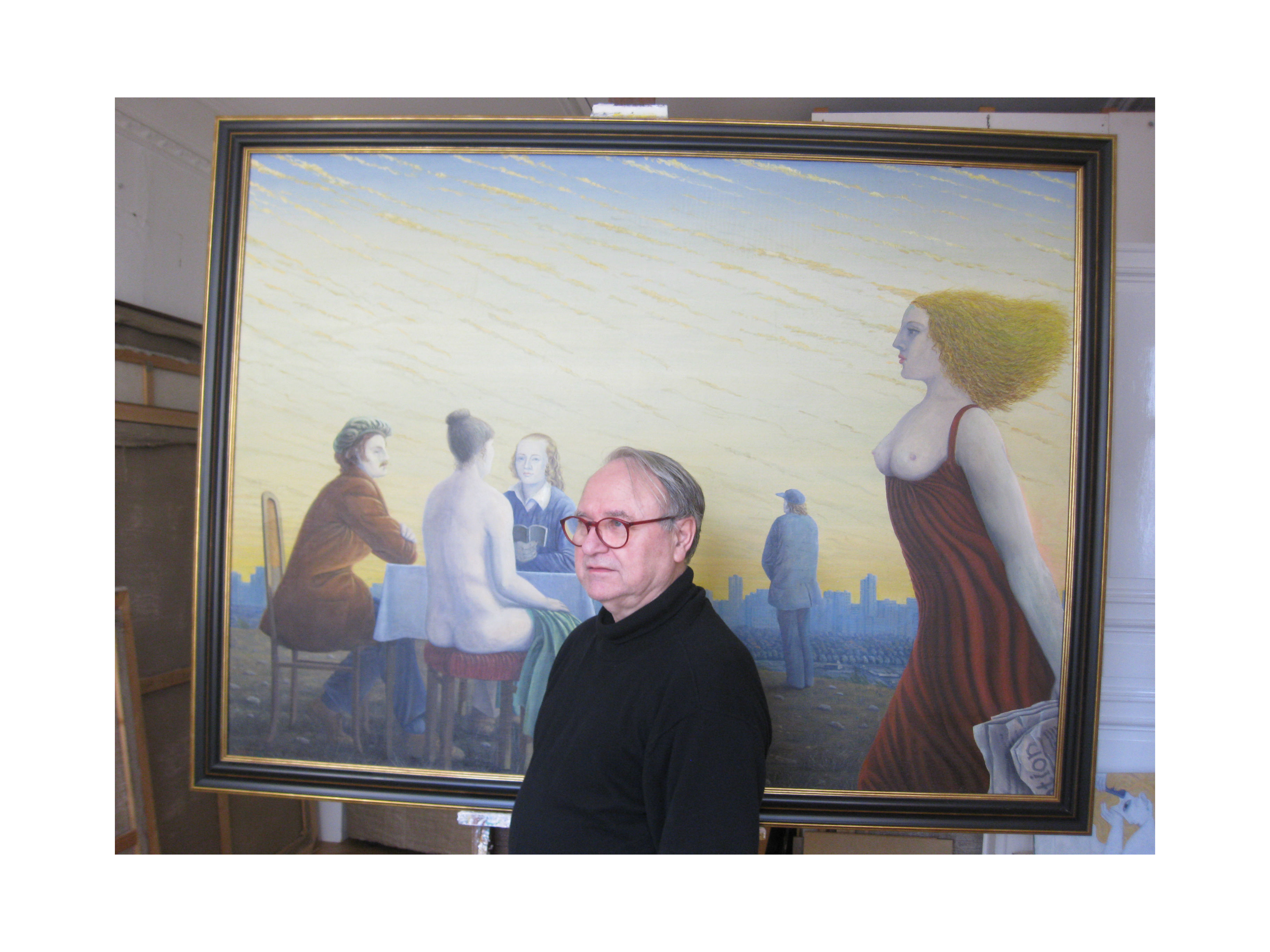 Roger Servais in front of his Hölderin-Biermann Painting (1976)