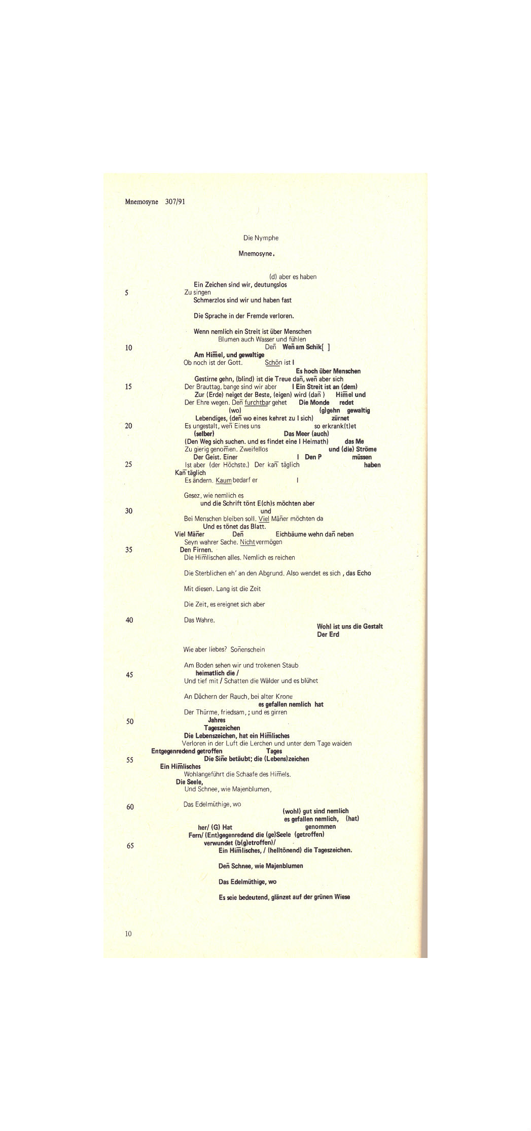 In the preface to Empedocles (part of the third fragment) Hölderlin links this explanation to the mother of all muses, namely 'Mnemosyne' or what makes memory work: