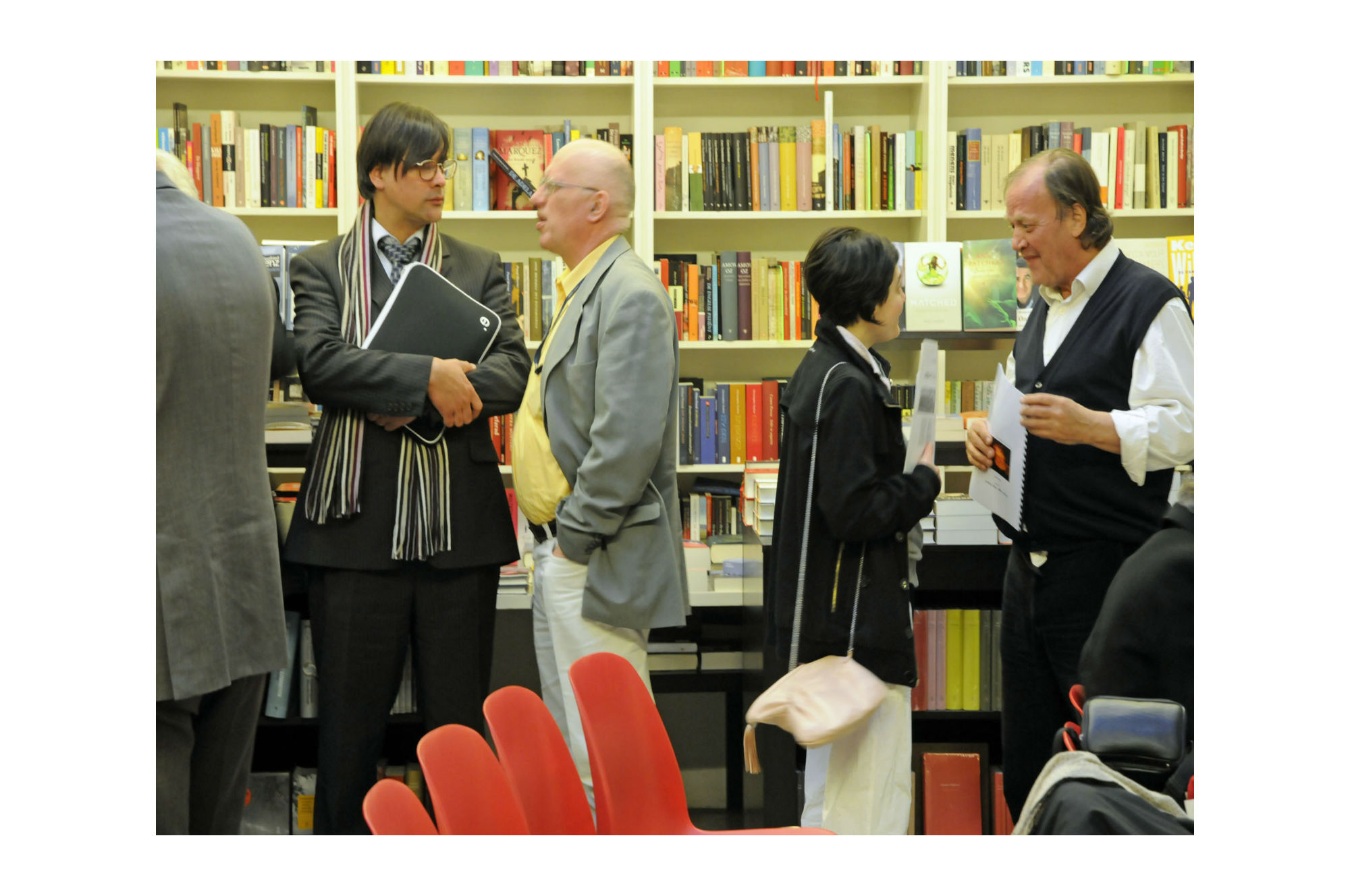 Hatto Fischer had to select like all the others two poems. At first he wanted to read the poem 'Unremittant soul', but when he heard during the discussion Fernando Rendon refer again to 'stones', as he had done at the European Commission, he decided to read a poem from the Collection 'Dialogue with Silence - the Paros poems'. It deals with stones or more precisely with stone walls. Interestingly enough a woman came up to him after the reading to say the stone walls in a landscape remind her more of a seam after having sown something even if like a chicken or a Turkey's belly after having put filling inside. More needs to be said about that poem about the stones since they have many metaphorical meanings, including bread for the poor. Why Jean Paul Sartre linked stones to a sign of Racism, that is also a hypothesis in need to be examined. The other poem he selected for reading stems from the Collection 'City Poems' just recently re-written after having transferred them from a small note book in anticipation of all the readings they would be doing in Paris, Antwerpen and now here at Passa Porta in the midst of Brussels, indeed very close to the Bourse and the Flemish Cultural Centre.
