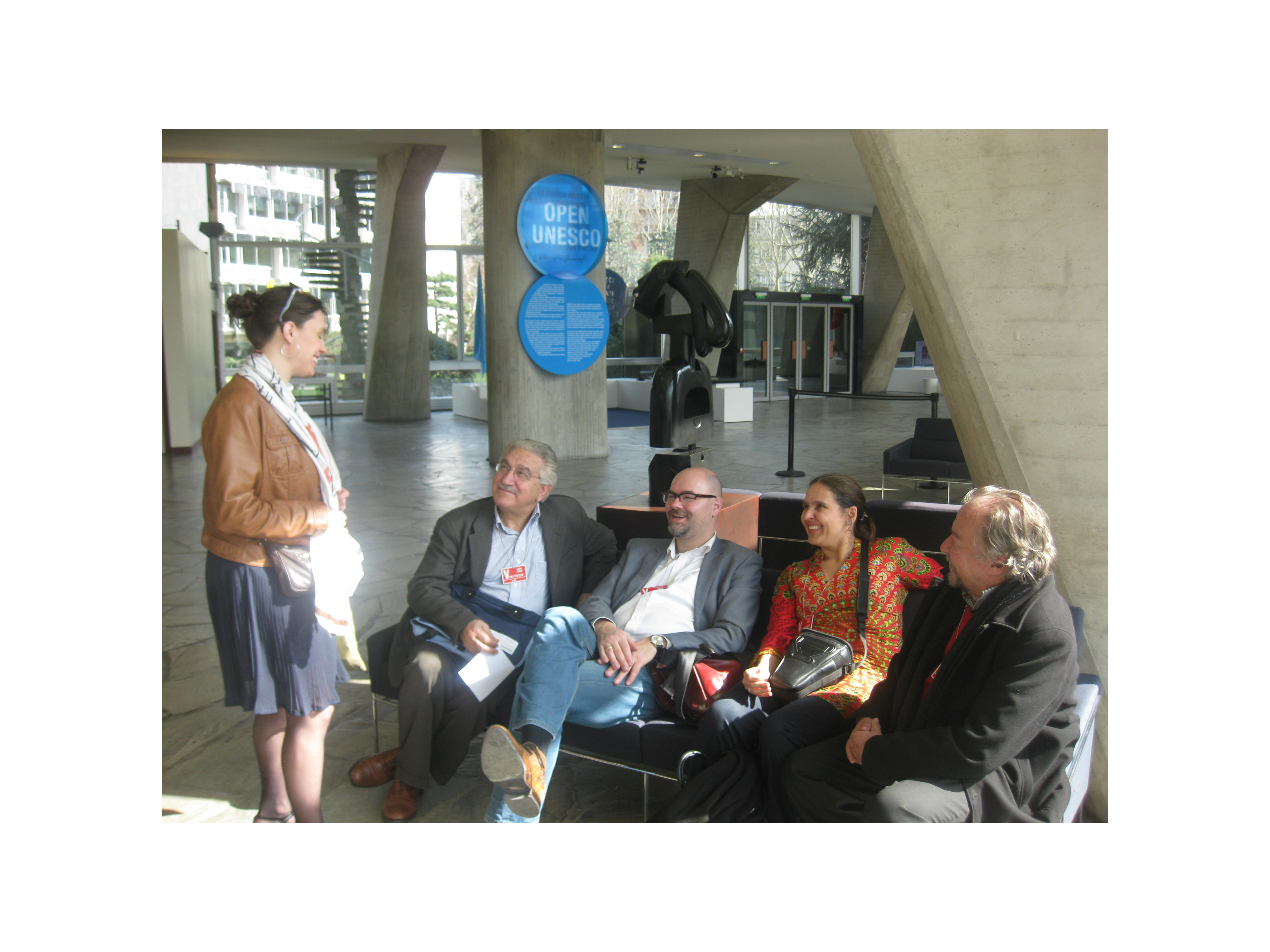 UNESCO 7, place de Fontenoy 75352 Paris 07 SP France www.unesco.org Currently UNESCO is under siege, financially speaking, after the USA stopped paying its contribution - 25% of the total budget - out of protest that the organization has accepted Palestine as full member. The Delegation was to met with the director of UNESCO, but who was at that time in the United States to resolve precisely this issue. Instead, a meeting was arranged with Katerina Stenou, Director of the Intersectoral Platform for a culture of peace and of non-violence. Katerina Stenou was a key person responsible for the UNESCO initiative on 'cultural diversity'.