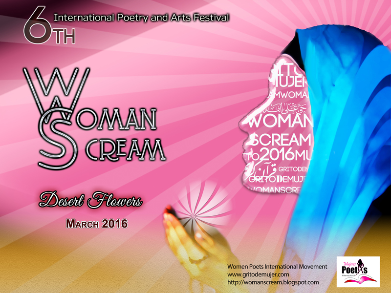 The Women Poets International Movement (Mujeres Poetas Internacional MPI) Inc. Invites to the opening acts of the 6th Woman Scream International Poetry and Arts Festival under the theme "Desert Flowers", a tribute to the Iranian Soraya Manutchehri victim of stoning, as well as all the victims of ancestral torture methods such as ablation, acid attacks, crimes of honor, among other practices. The city of Madrid will be for the fist time the host of the renowned festival in a series of events that will take place the days 2, 4, 5, 6, 10 and 12 of March 2016. The 6th. Woman Scream-Madrid will include exhibitions, concerts, theater, music, dance, and the presenting a collective anthology with participant poets. The events will be conducted in locations such as the Cultural Center of Buena Vista, Foundation Poetry Center Jose Hierro, the Public Library Eugenio Trias, The Ateneo of Madrid, among others. Festival events will be free and open to the public.