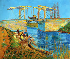 Some further interpretation may be allowed, in order to come closer to the bridge topic. For Van Gogh was captured by this bridge called 'Le Pont de L'Anglois' located in Arles. In a letter to Emile Bernard he adds a sketch of the bridge. Most outstanding is that in the drawing there is depicted in the foreground a man and woman. The man has his arm around her waist, while she has thrown her arm over his left shoulder. They walk towards the bridge as if a dream shall come true. They have met just recently and now they have decided to cross over the bridge together, in order to reach the other side and therefore a new life. 2