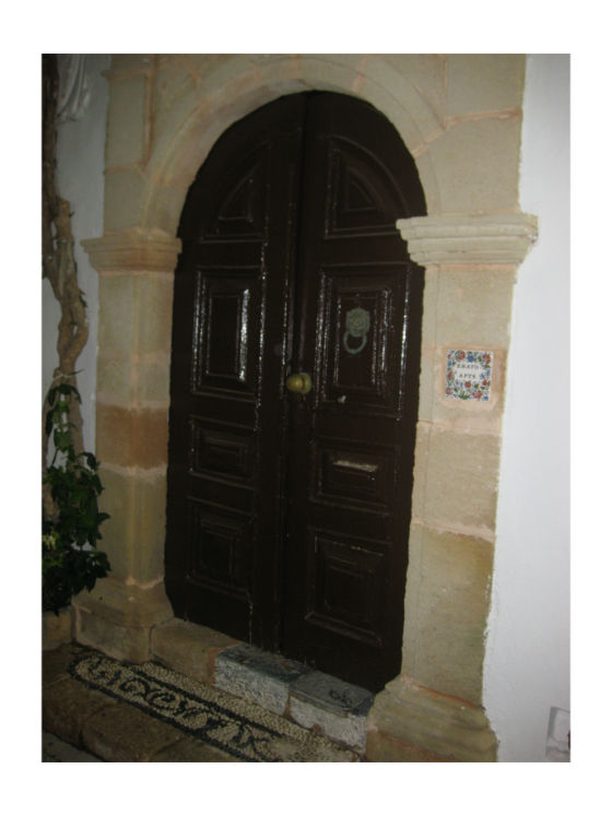 Entrance door to ERATO Apartments in Lindos, Rhodes