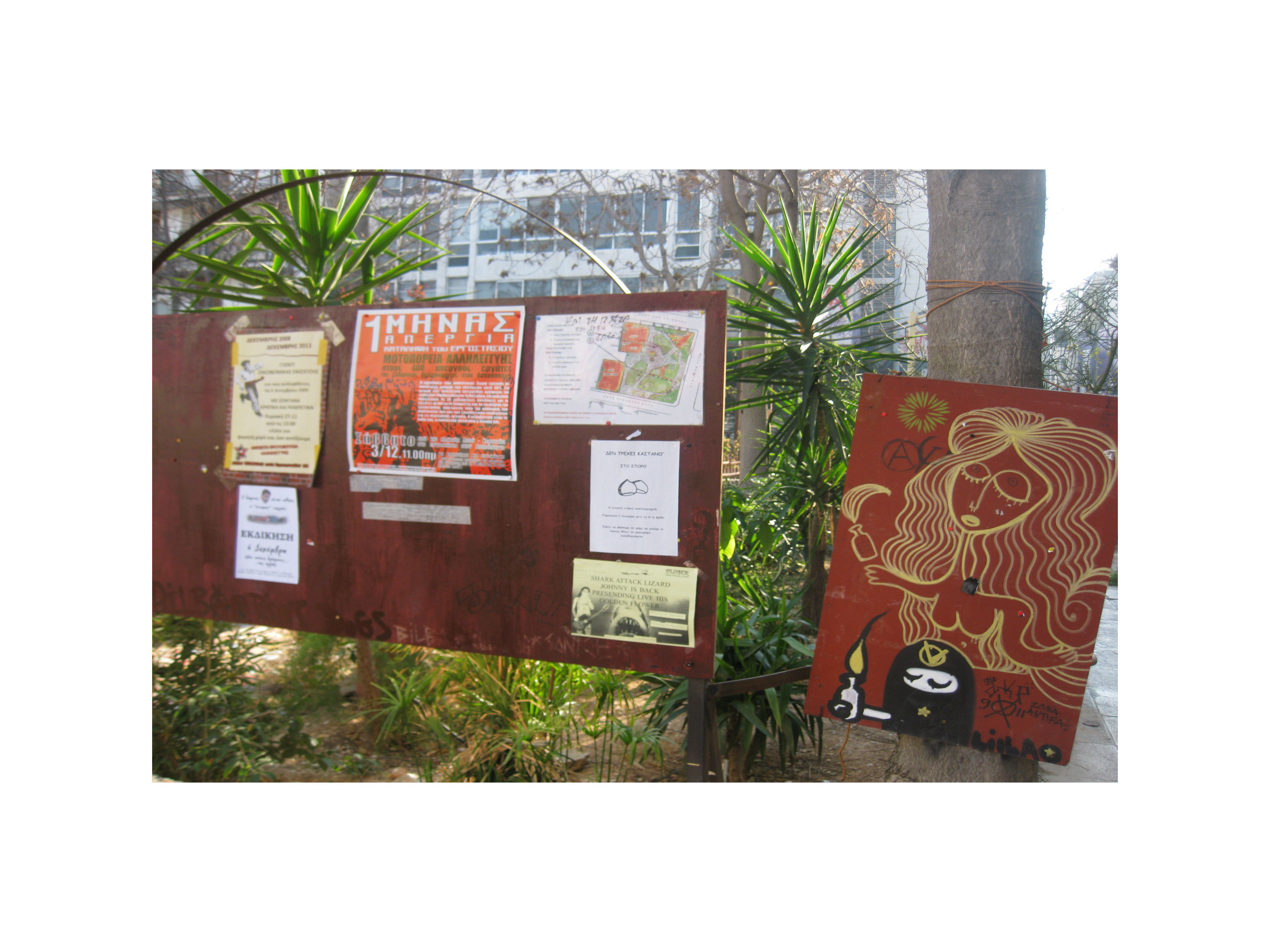 Bulletin board to park in Exarchia, Athens Dec. 2011
